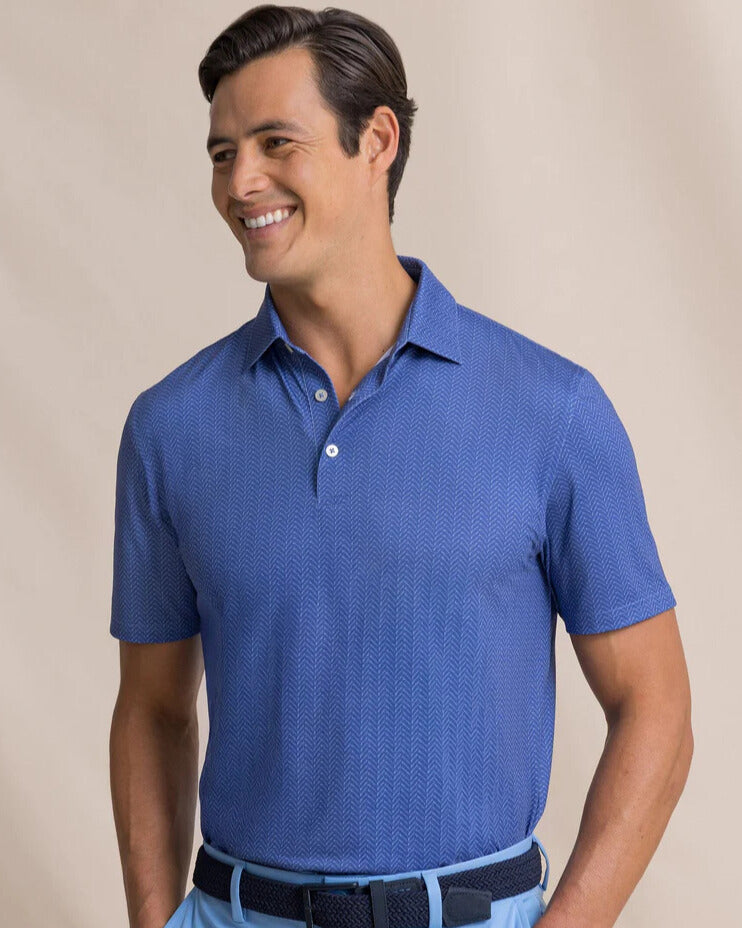 Drop-tail hem. Internal collar stays in collar. Branded imitation mother-of-pearl buttons. Silicone Skipjack branding on back neck.